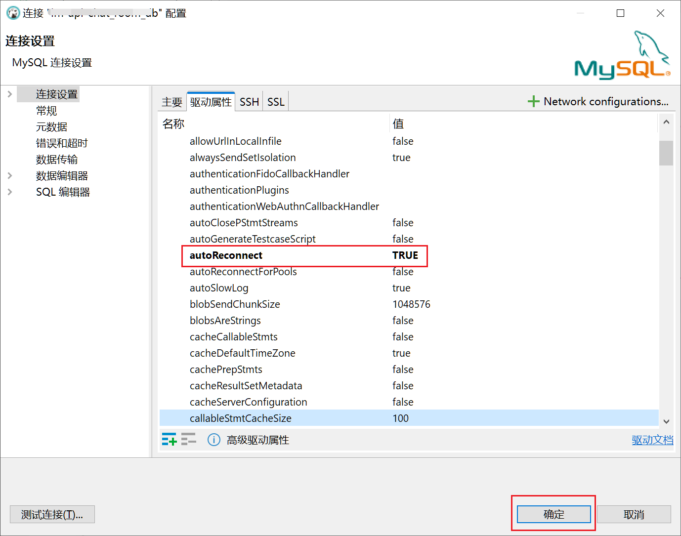 编辑连接 -> 连接设置 -> 驱动属性:autoReconnect属性设置为true。